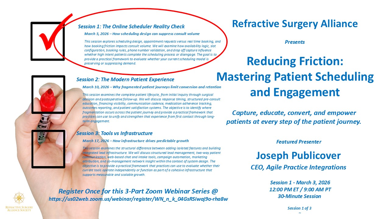 This session examines the complete patient lifecycle, from initial inquiry through surgical decision and post operative follow up. We will discuss response timing, structured pre consult education, financing visibility, communication cadence, medication adherence tracking, outcomes reporting, and patient satisfaction systems. The objective is to identify where fragmentation occurs across the patient journey and provide a practical framework practices can use to unify and strengthen that experience from first contact through long term engagement.