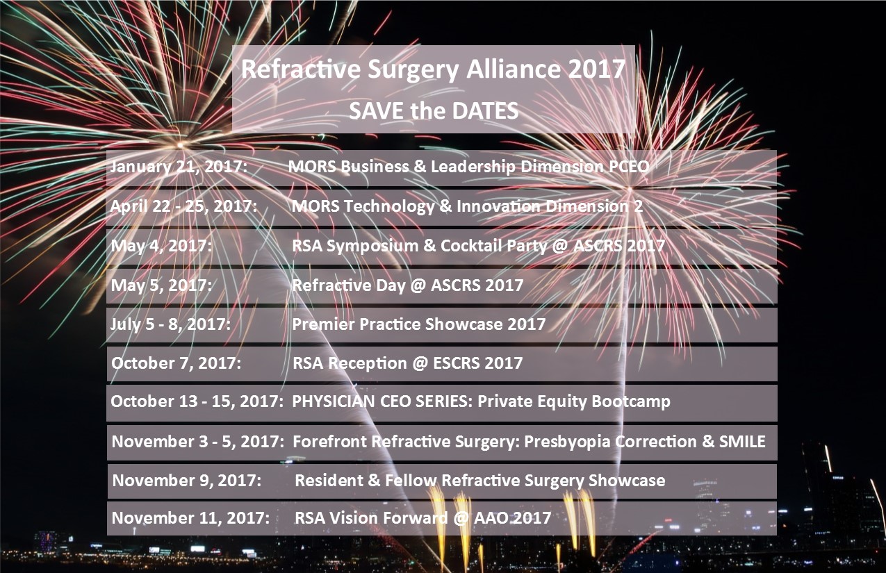 The Refractive Surgery Alliance is a professional organization and does not provide medical services or advice. Information provided here is obtained from a variety of sources and is provided for informational services, only.