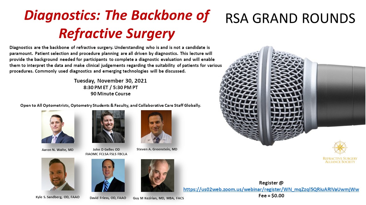 The Refractive Surgery Alliance is a professional organization and does not provide medical services or advice. Information provided here is obtained from a variety of sources and is provided for informational services, only.