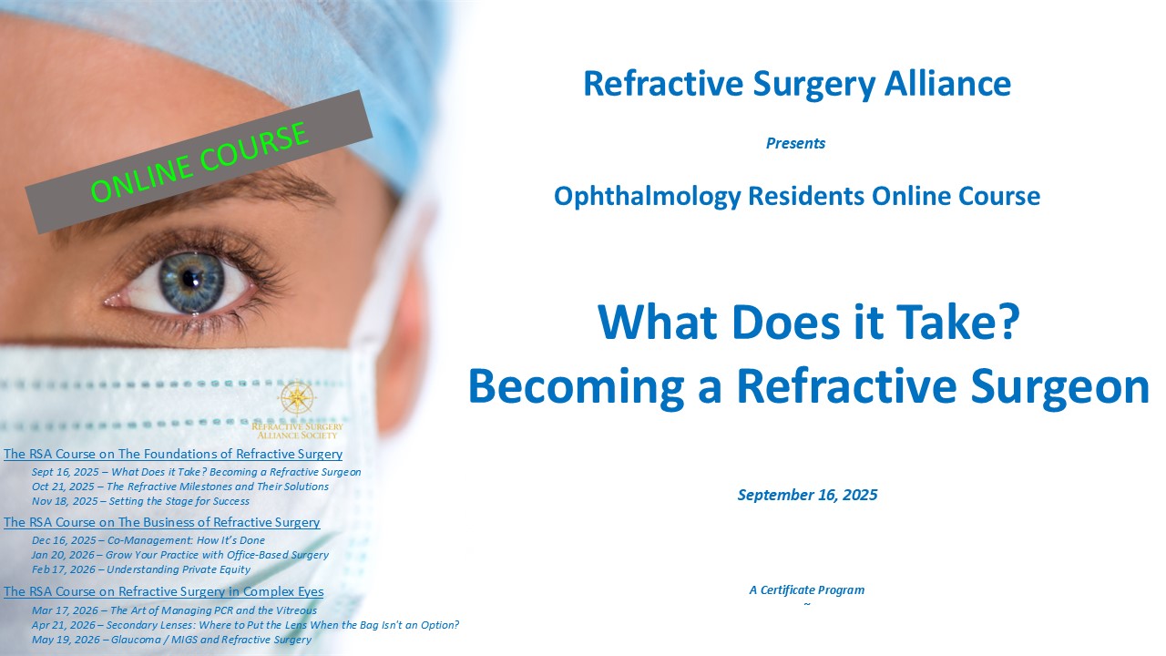 The Refractive Surgery Alliance is a professional organization and does not provide medical services or advice. Information provided here is obtained from a variety of sources and is provided for informational services, only.