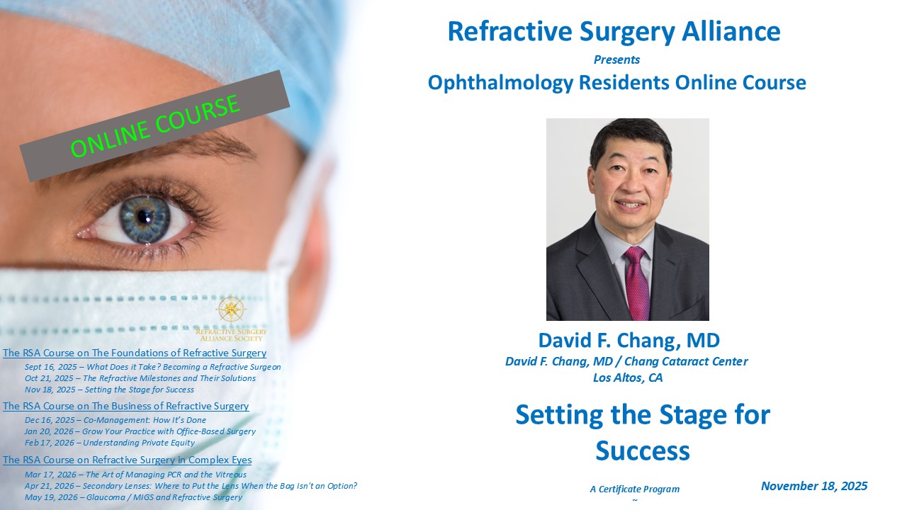 The Refractive Surgery Alliance is a professional organization and does not provide medical services or advice. Information provided here is obtained from a variety of sources and is provided for informational services, only.