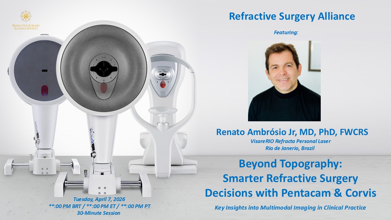 The Refractive Surgery Alliance is a professional organization and does not provide medical services or advice. Information provided here is obtained from a variety of sources and is provided for informational services, only.