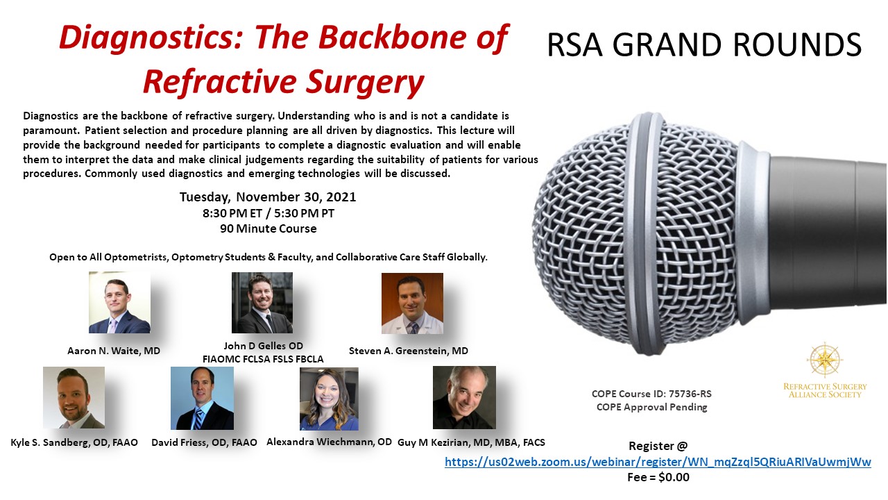 The Refractive Surgery Alliance is a professional organization and does not provide medical services or advice. Information provided here is obtained from a variety of sources and is provided for informational services, only.