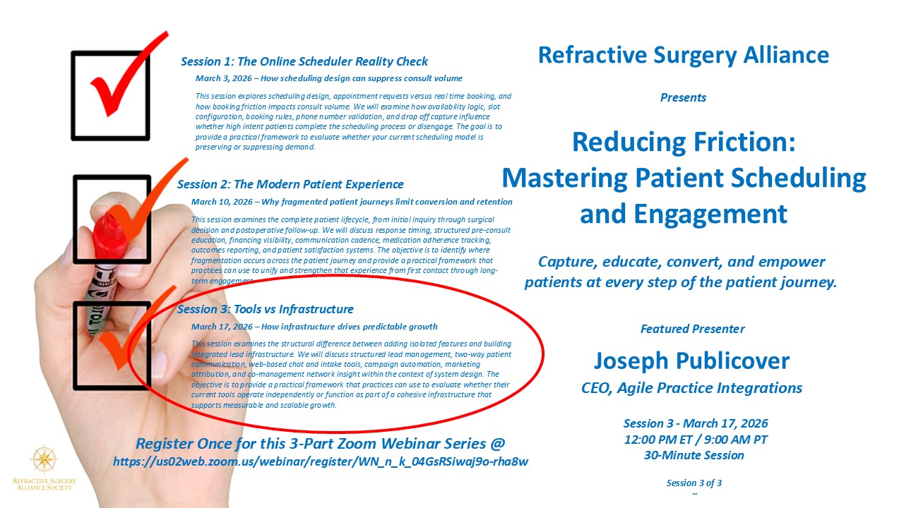The Refractive Surgery Alliance is a professional organization and does not provide medical services or advice. Information provided here is obtained from a variety of sources and is provided for informational services, only.